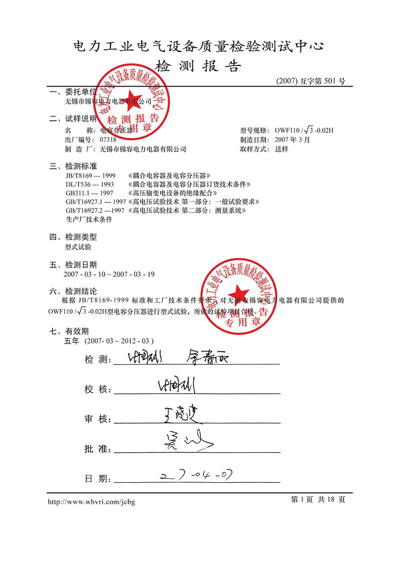 Test report release time:2020-07-20 04:02:47source:Wuxi Xirong Electric Appliance Co., Ltd.Click:1436