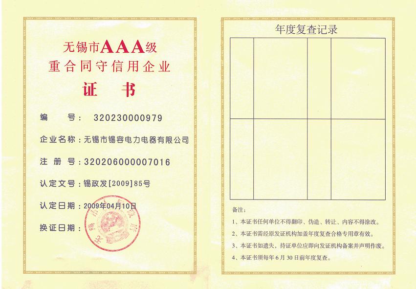 AAAContract and credit enterprise release time:2020-07-20 04:32:27source:Wuxi Xirong Electric Appliance Co., Ltd.Click:1539